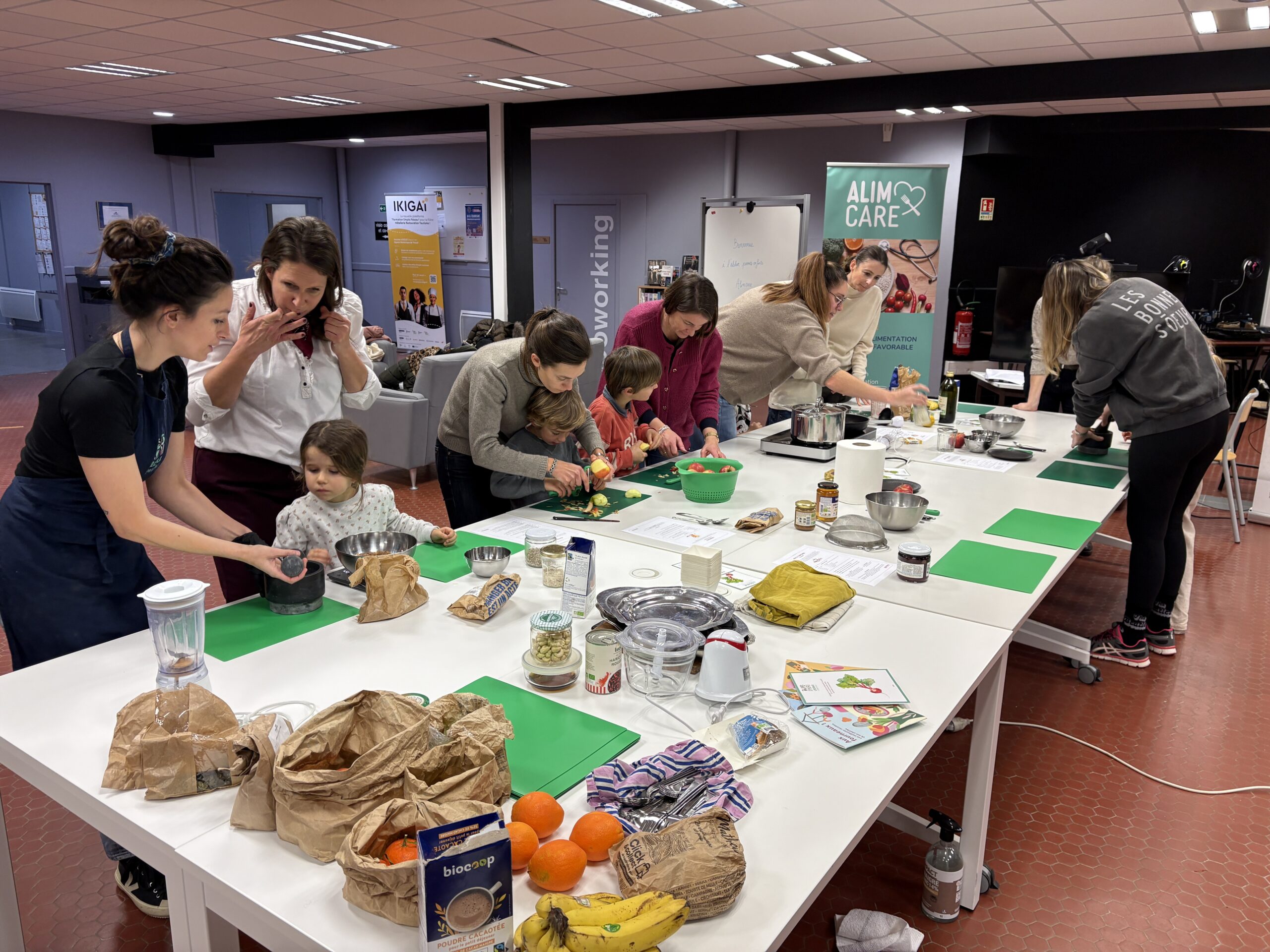 Le temps d’un moment privilégié, parents et enfants ont ainsi pu réaliser un en-cas parmi les cinq proposés, échanger avec l’équipe du projet ALIMCARE sur l’alimentation des enfants et repartir avec un livret de recettes saines et durables.