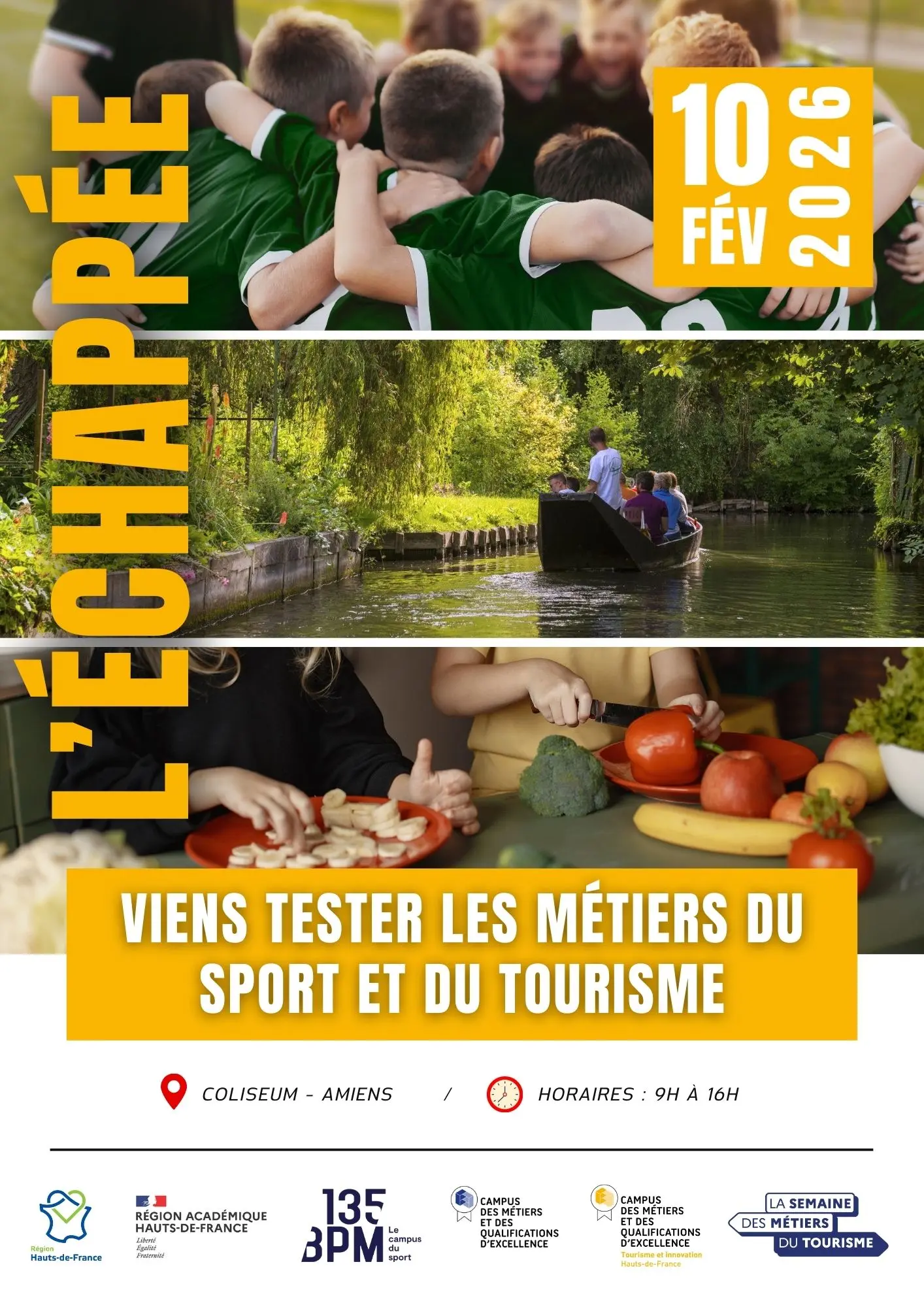 En co-organisation avec 135 BPM – Le campus du sport, cet événement mettra en avant le lien entre sport et tourisme à travers un forum de découverte des métiers. L’événement se tiendra au Coliseum à Amiens et accueillera plus de 400 collégiens et lycéens. Des temps d’échanges avec des professionnels en face à face seront également proposés ainsi qu’une découverte du métier de guide touristique à travers une visite du quartier du Coliseum.